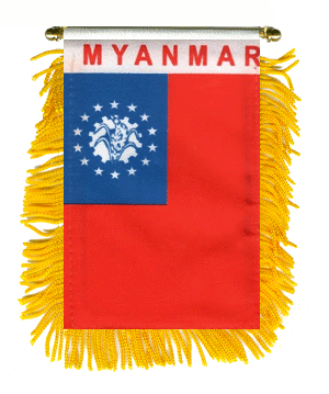Myanmar Mini Banner Are Suitable For Car Windshields, Windows, Or Mirrors And Are Great Ways To Show Your Heritage. This Is A Double-sided Polyester 4×6″ Gold-fringed Flag That Comes With A Brass Staff, A Suction Cup & String For Hanging. The Flag Has Beautiful Vibrant Colors And Each Comes In The Original Plastic Wrapping. Made In China.
